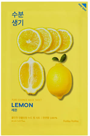 Holika Holika Pure Essence Mask Sheet - Citrom A  C-vitamin és gyömölcssav tartalmú Pure Essence fétyolmaszk visszaállítja a bőr rugalmasságát és egészséges ragyogását, feltölti vitaminokkal és élettel. A maszk enyhe hámlasztó hatású, minden bőrtípusra ajánljuk. Hatóanyagok: