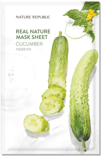 Nature Republic Real Nature Mask Sheet Cucumber — egy textilmaszk, amely táplálja a bőrt hasznos anyagokkal, megszünteti a bőrpírt és hámlást, friss és egyenletes tónust ad, valamint harcol a fáradtság jelei ellen. Jellemzők: