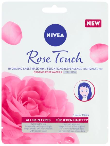 Nivea® rose touch hidratáló arcmaszk organikus rózsavízzel és hialuronsavval a ragyogó arcbőrért.