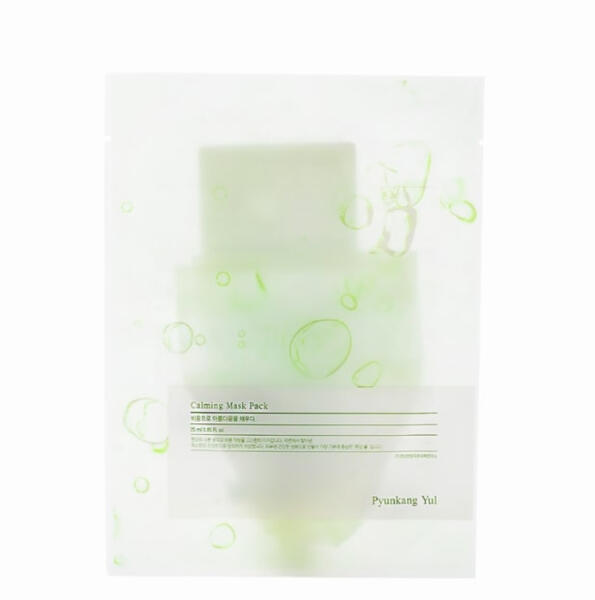 Pyunkang Yul Calming Mask , mely hatékonyan nyugtatja az irritált bőrt és segít helyreállítani az egyensúlyt a sérült és érzékeny bőrön. Alacsony pH-tartalmú formula, mesterséges illatanyagok és ásványi olajok nélkül. A termék hatóanyagai: